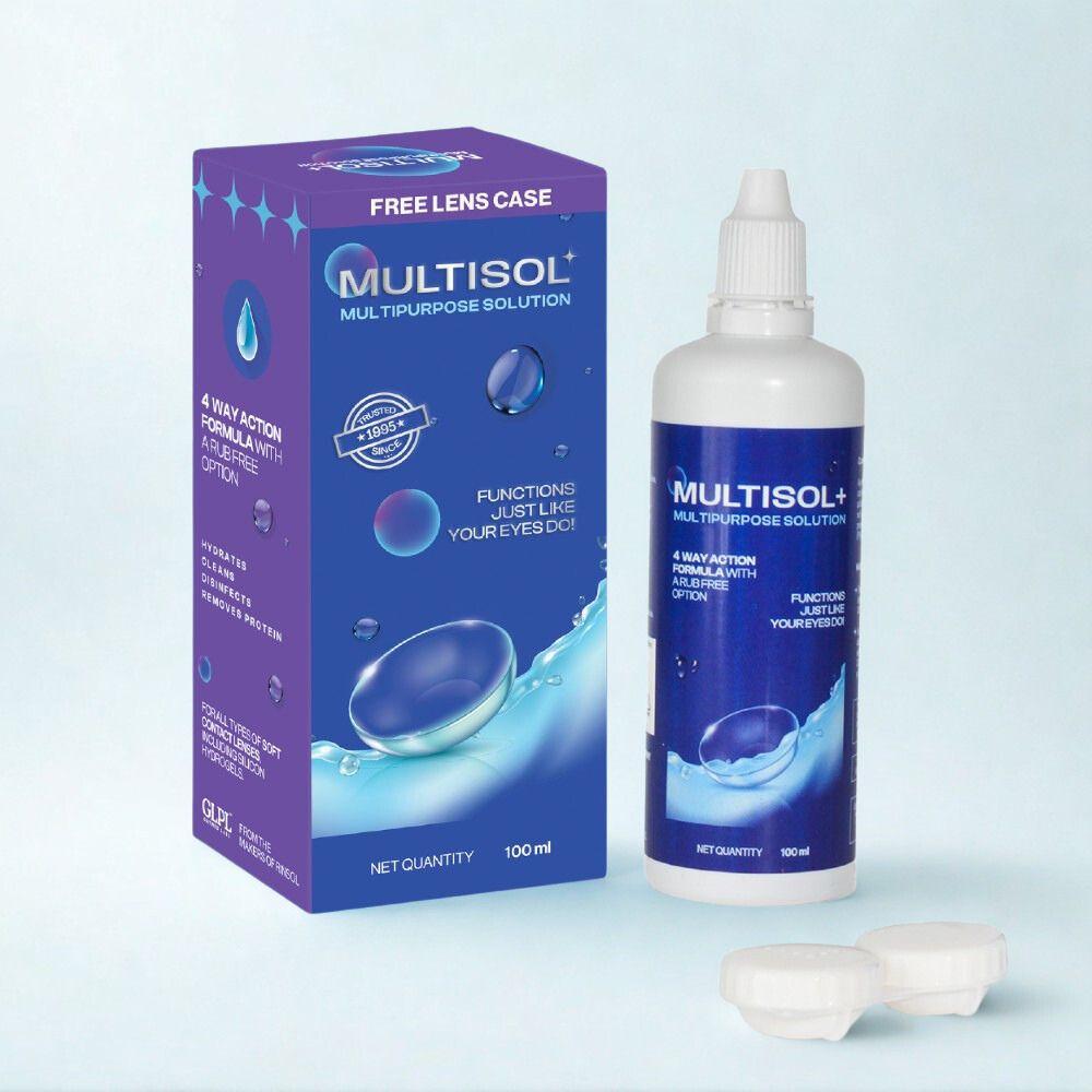 Multisol 100ml লেন্স সলিউশন লেন্সকে সম্পূর্ণভাবে পরিষ্কার ও জীবাণুমুক্ত করে। এটি ময়লা, প্রোটিন ডিপোজিট এবং ধুলো অপসারণ করে। সফট হাইড্রোজেলসহ সব ধরনের কনট্যাক্ট লেন্সের জন্য উপযোগী, যা প্রতিদিন পরিষ্কার, স্বচ্ছ ও আরামদায়ক ব্যবহার নিশ্চিত করে।